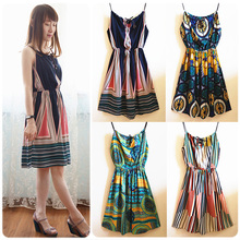 2016夏波西米亚印花露肩吊带连衣裙度假沙滩裙短裙吊带裙背心裙棉