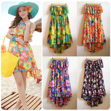 度假沙滩裙波西米亚短裙一字领露肩荷叶边抹胸高腰显瘦印花连衣裙
