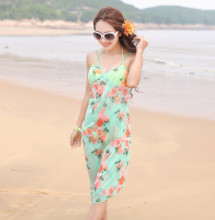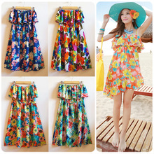 2015沙滩裙波西米亚吊带抹胸/裹胸印花连衣裙海边显瘦度假长裙棉