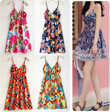 夏季韩版波西米亚显瘦田园碎花圆领吊带连衣裙度假裙沙滩裙短裙棉