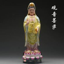 德化陶瓷立莲观音菩萨佛像摆件 站像白瓷器观世音菩萨镇宅保平安