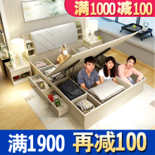 储物床软包板式高箱多功能抽屉1.5 1.8米 双人收纳气动木头大婚床