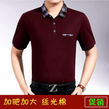 加肥加大码男短袖体恤翻领中年胖人特大号肥佬半袖丝光棉薄t恤衫