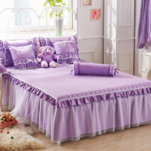 爱府韩版全棉蕾丝夹棉床裙单件加厚冬纯棉床罩床单纯色防滑1.8米