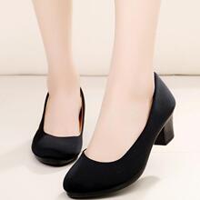 时尚OL通勤工作装酒店黑色粗中跟老北京布鞋 女鞋单春秋夏礼仪鞋