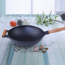 铸铁锅炒锅 无涂层不粘锅木柄老式生铁炒菜锅平底燃气电磁炉通用