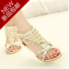 2017夏季波西米亚串珠女鞋水钻中跟罗马坡跟露趾凉鞋女