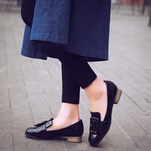 2016秋季新品百搭女鞋漆皮单鞋女复古平底平跟单鞋女方扣女鞋潮
