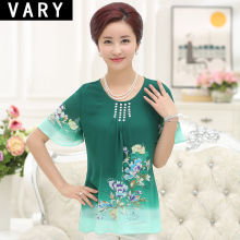 VARY夏新妈妈装打底衫大码宽松圆领雪纺衫女女短袖T恤清仓
