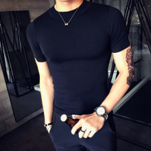 夏季t恤男短袖时尚圆领紧身青年半截袖潮流修身男士体恤上衣服