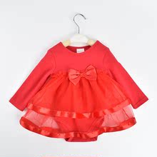 公主礼服裙子婴儿连体衣服新生儿春秋三角哈衣女宝宝满月百日周岁