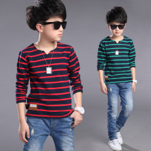 男童T恤长袖纯棉2017韩版儿童V领条纹体恤中大童春秋款长袖打底衫