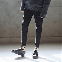 2016夏季新款权志龙同款冬黑色破洞牛仔裤男修身小脚裤男潮铅笔裤