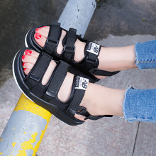春夏季大码女鞋平底魔术贴凉鞋加肥加宽沙滩鞋子40 41 42 43 44