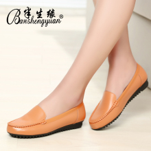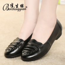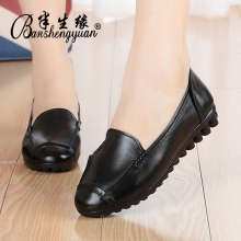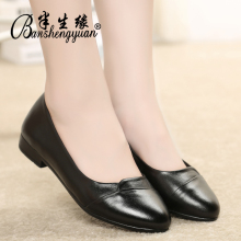 半生缘春秋妈妈鞋真皮单鞋平底中老年女鞋休闲软底防滑浅口女皮鞋