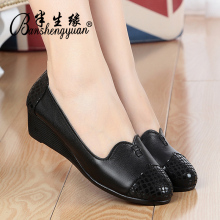 2015秋季新款妈妈单鞋真皮平底坡跟中年女鞋大码防滑中老年女单鞋