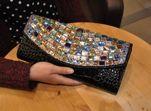 2017新款镶钻彩钻手包鳄鱼纹水钻包大容量单肩斜跨女包欧美潮
