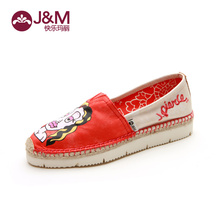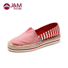 j&m/快乐玛丽男鞋春夏新品潮套脚帆布鞋条纹麻底休闲懒人鞋57189M