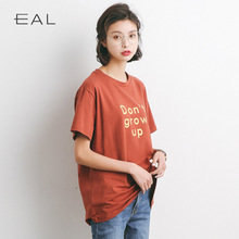2017夏装新款印花宽松短袖纯棉t恤女上衣字母撞色打底衫女2件包邮