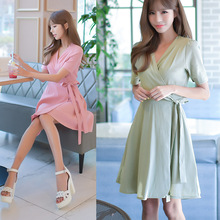 2017夏女装时尚修身A字蓬蓬裙子系带连衣裙打底裙纯色中长裙亏本