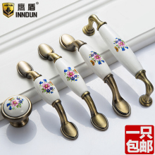 鹰盾 田园欧式陶瓷拉手 抽屉橱柜门仿古典把手 红蓝花青古铜拉手