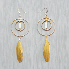 原创手作设计 复古气质优雅天然羽毛喷金 松石几何耳环耳饰一对
