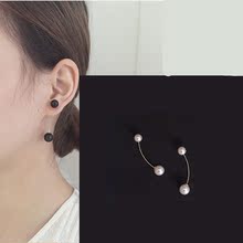 原创设计 手作饰品 极简约 弓形造型 珍珠 个性耳钉 女耳饰一对