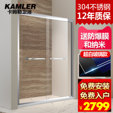 卡姆勒304不锈钢一字型双门互移淋浴房隔断卫生间超白玻璃宝玑