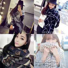 韩版冬季纯色针织毛线围巾加厚保暖披肩两用女学生韩国长款黑百搭