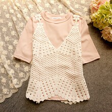 2017春夏新款女装2件套纯棉蕾丝T恤森女百搭时尚潮