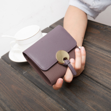 2016新款欧美风头层牛皮短款钱包女简洁可爱搭扣皮夹潮横款