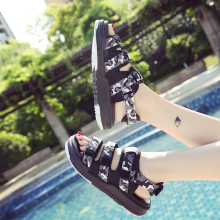 韩版迷彩百搭运动凉鞋女夏季2017新款魔术贴厚底沙滩鞋休闲学生鞋
