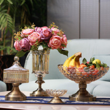 现代客厅家用茶几高脚水晶玻璃果盘摆件结婚大号欧式创意水果盘