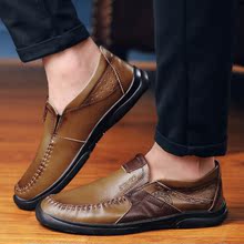 夏季真皮男鞋英伦皮鞋男士休闲鞋韩版软面牛皮鞋子男圆头青年潮鞋