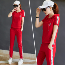连帽卫衣女夏季运动套装薄款宽松短袖哈伦七分裤胖MM休闲服两件套