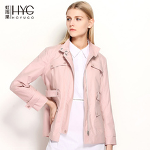 虹雨果2017春秋新款拉链宽松休闲外套女短款长袖显瘦风衣粉色夹克