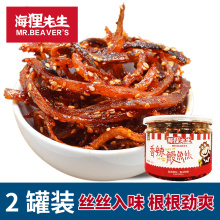 海狸先生鳗鱼丝吃的香辣零食小吃香辣味特产麻辣零食海鲜干货2罐