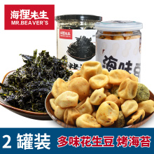 海狸先生烤海苔 碎海苔即食 紫菜海味花生豆零食组合220g儿童零食