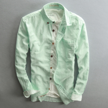 2017新款夏季男士休闲亚麻衬衫纯色薄款长袖翻领修身男款棉麻衬衣