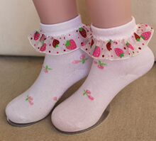 清仓 春款女童公主蕾丝花边袜 宝宝全棉袜 大童公主袜草莓花边