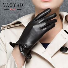 瑶瑶秋冬季女士山羊皮真皮手套 薄款荷叶边修手短款开车8110