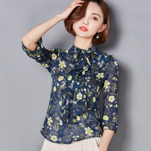 2017夏季新款女装大码宽松显瘦雪纺衫女喇叭袖上衣碎花打底衬衫潮