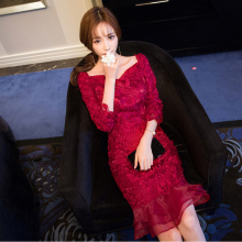 嫒色 2017新款名媛修身显瘦复古连衣裙 性感蕾丝包臀旗袍礼服 女