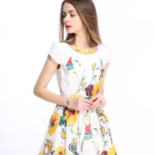 曼天雨杭派女装品牌折扣 BG夏装新款正品剪标 印花大摆百褶连衣裙