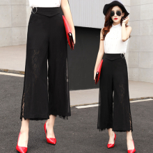 阔腿裤雪纺九分裤女2017夏新款高腰显瘦蕾丝拼接开叉直筒九分裤子