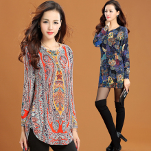 2016秋冬新款中长款女士羊绒衫圆领长袖薄款打底衫女印花套头毛衣