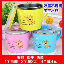 卡通不锈钢儿童杯婴幼儿水杯宝宝耐摔隔热防烫防尘果汁杯子幼儿园