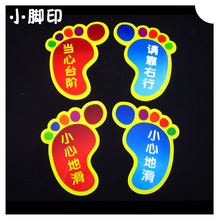 可爱迷你型当心台阶 请靠右行 小心地滑地贴可爱小脚印地贴幼儿园