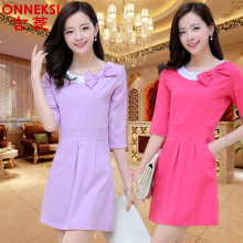 韩版正装职业连衣裙修身显瘦加大码七分袖作制服时尚美容师服装
