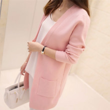 2017春夏新款中长款开衫毛针织衫秋装外套女宽松显瘦无扣外搭披肩